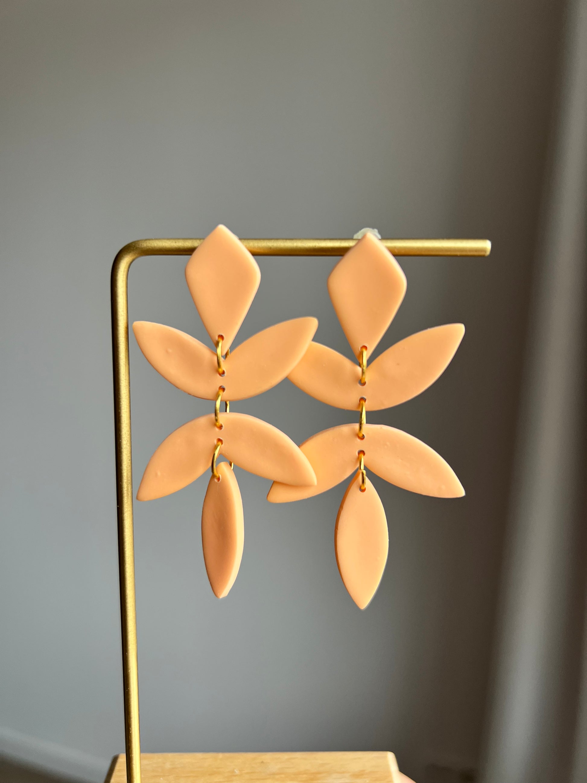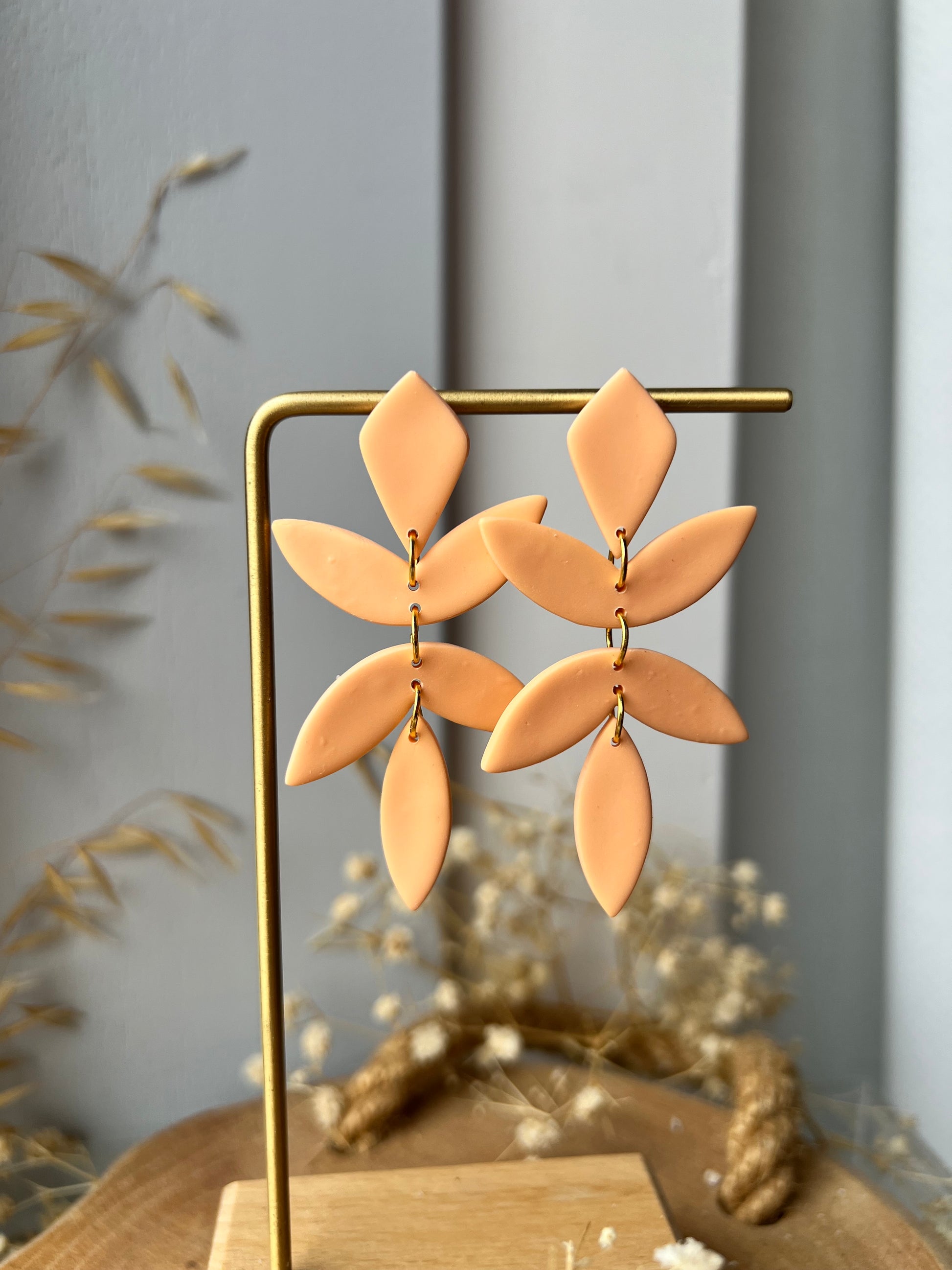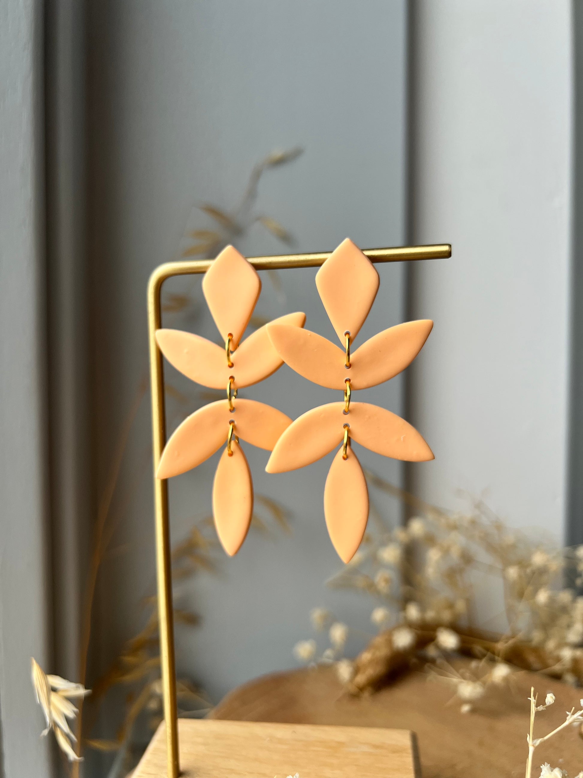 Deze oorbellen zijn handgemaakt van lichtgewicht materiaal, waardoor ze de hele dag comfortabel dragen. De vergulde accenten zorgen voor een luxueuze afwerking, terwijl de perzikkleur een vleugje zachtheid en vrouwelijkheid toevoegt aan elke outfit.