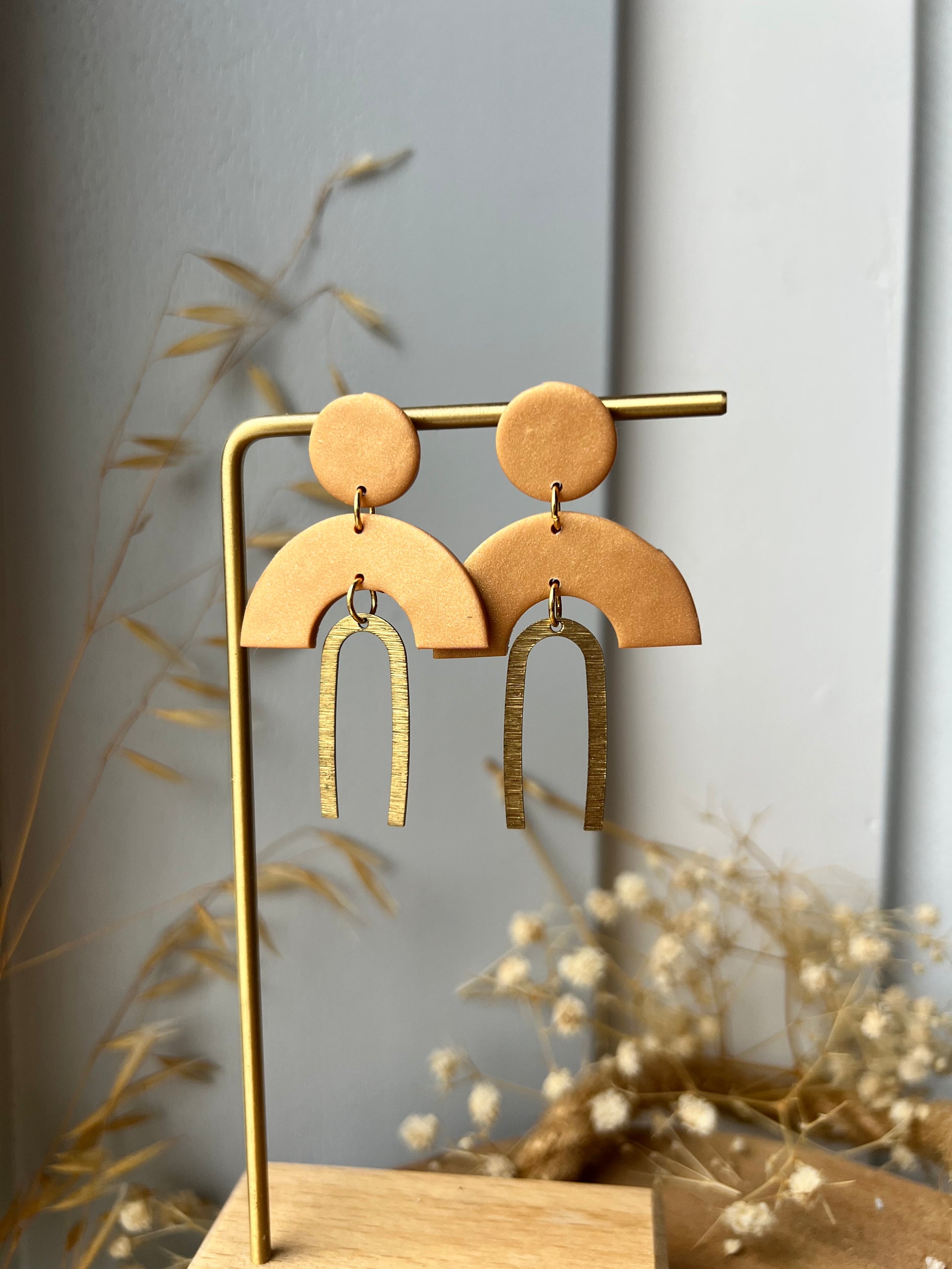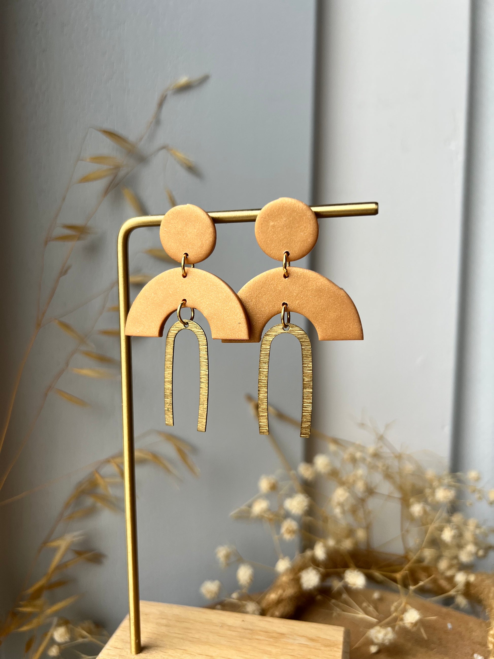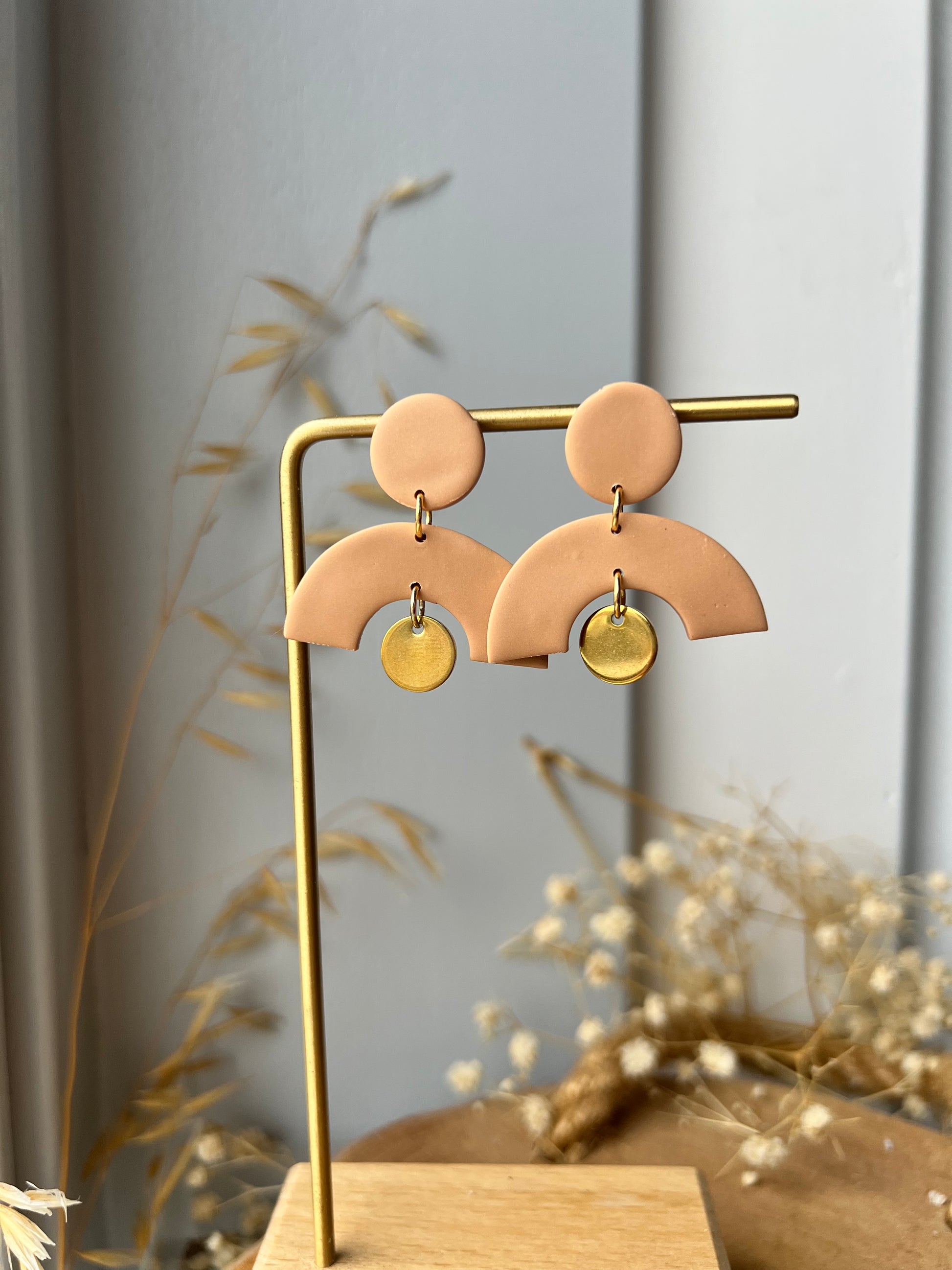 Leuke oorbellen die prima alledaags kunnen ook maar ook prachtig zijn voor een wat chiquere gelegenheid! De kleuren zijn goud en latte. Daaronder hangt een goudkleurig bedeltje.
