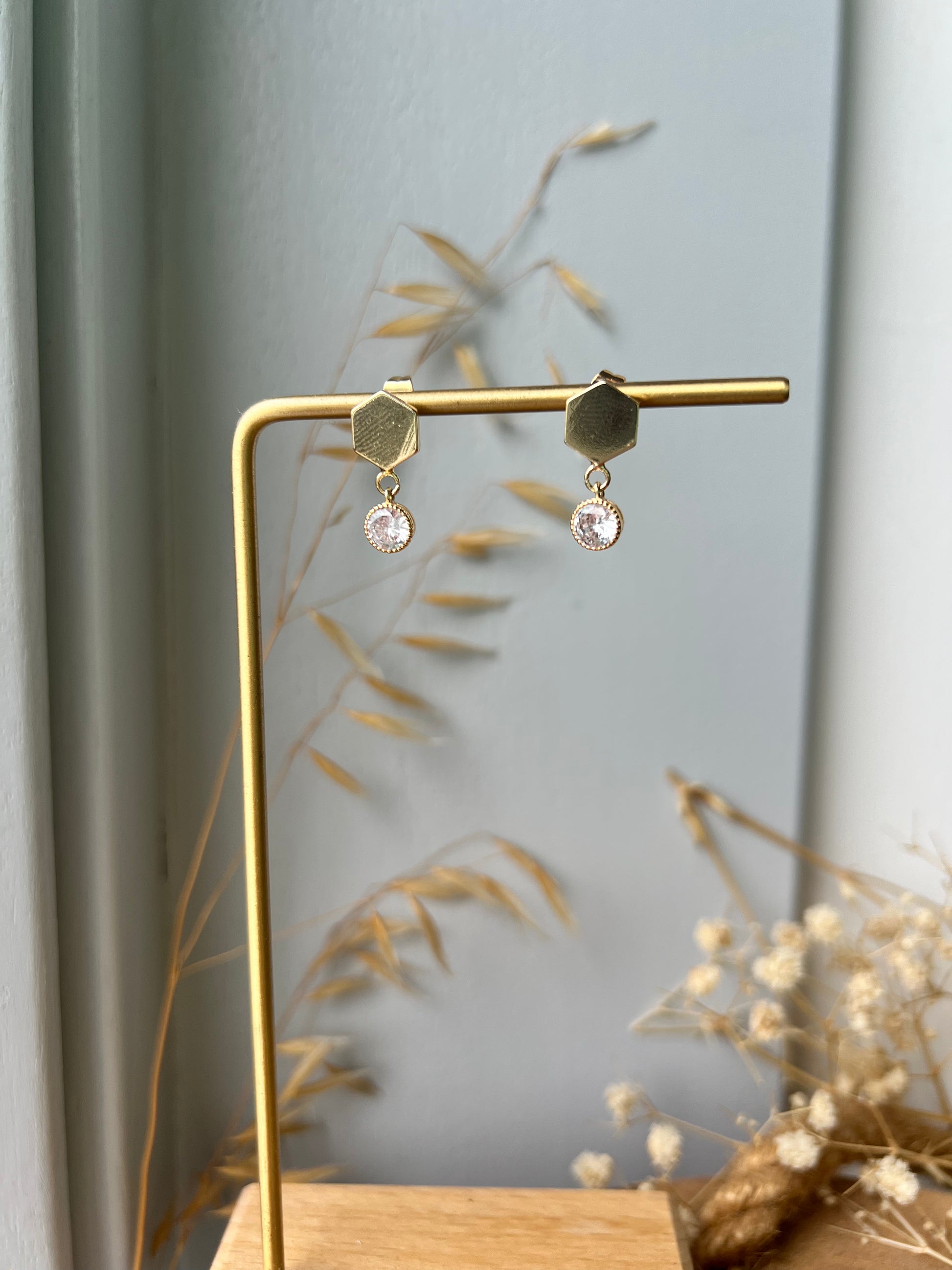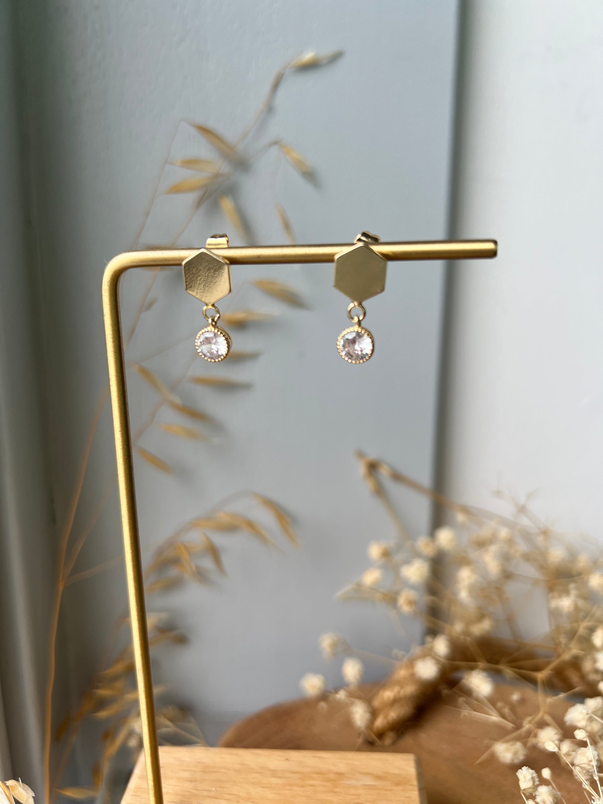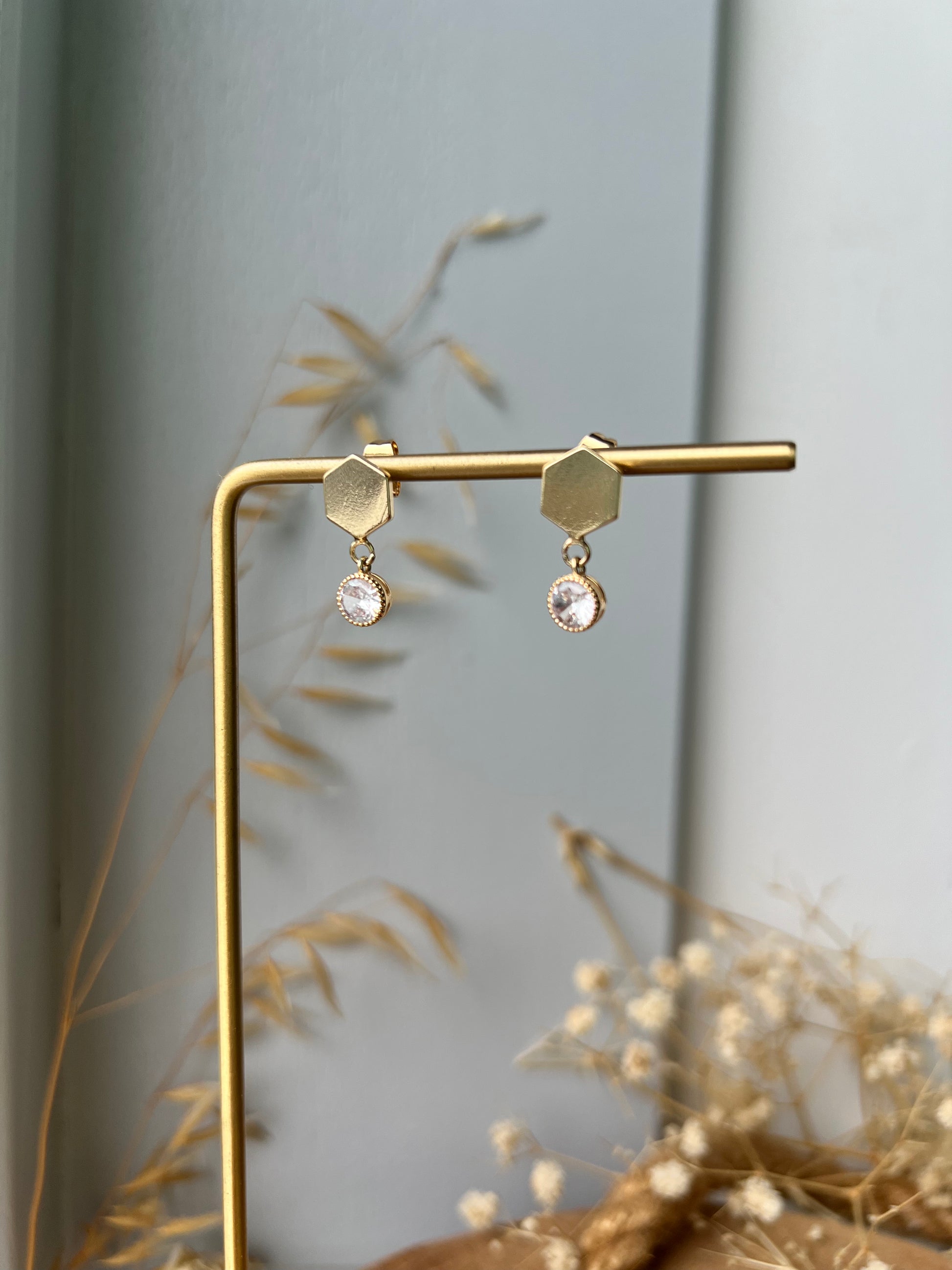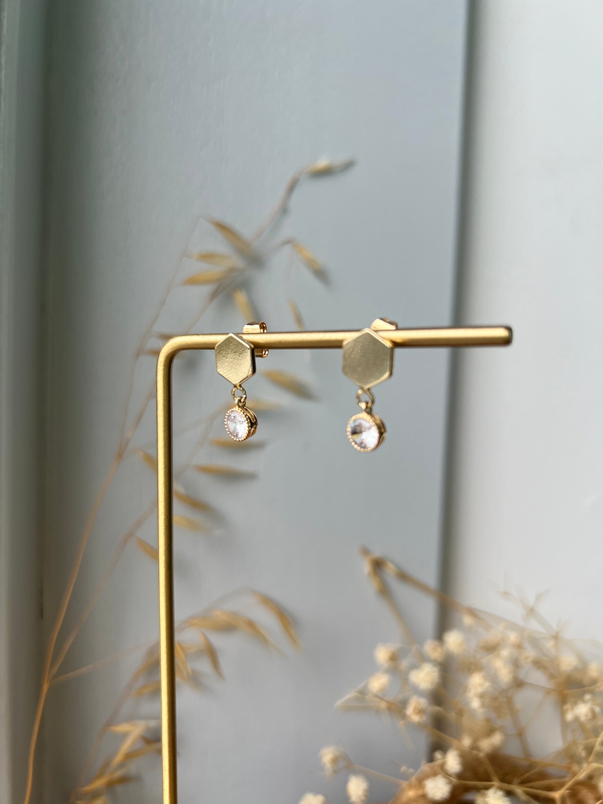 Deze oorbellen zijn klein maar fijn! Ze zijn 18k gold plated. Ze zijn afgewerkt met zirkonia steentjes. Ongeveer 2cm groot.