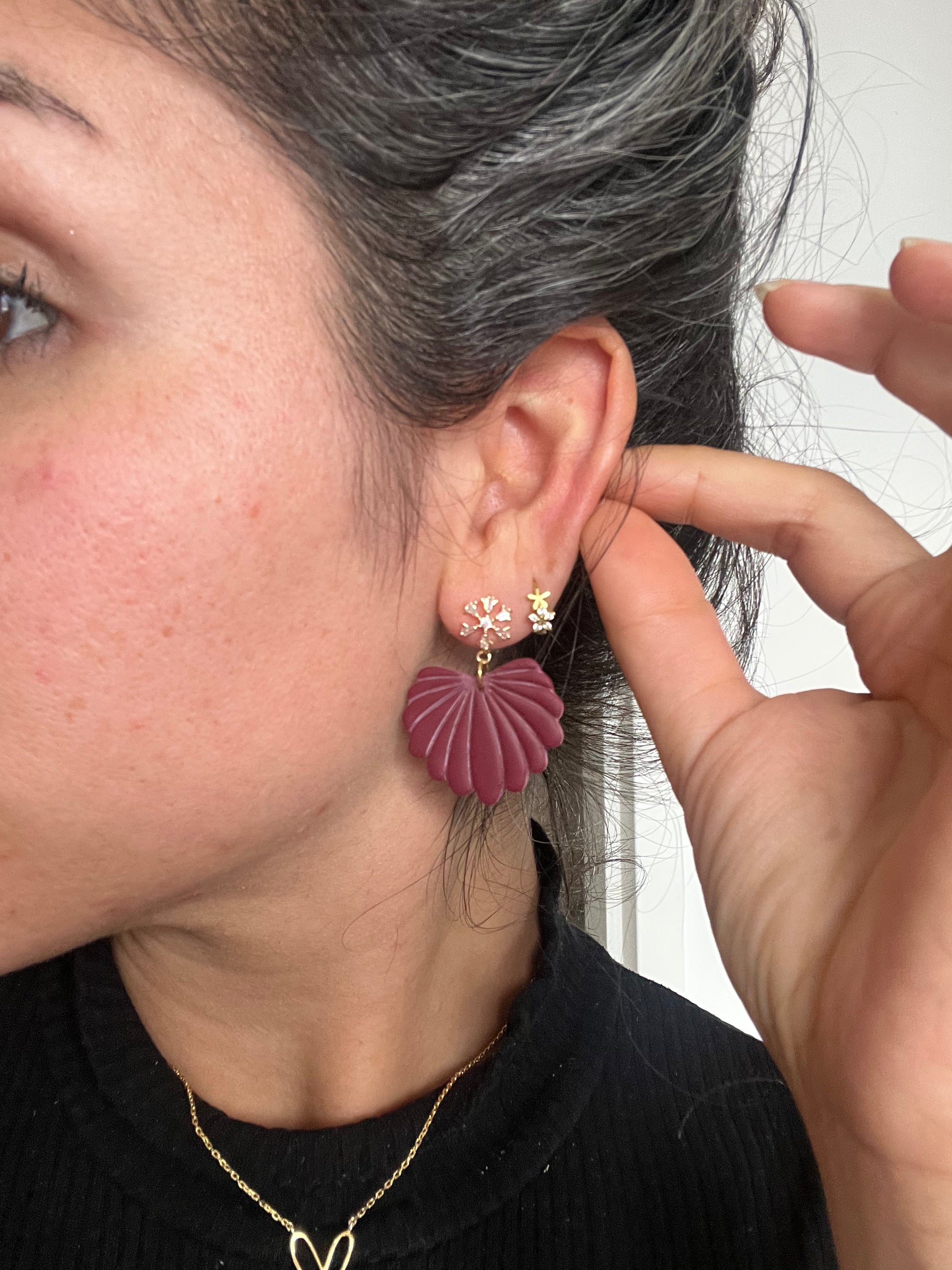 Blauwe schelp oorbellen met 18k gold plated sneeuwvlokje – lichtgewicht en elegant